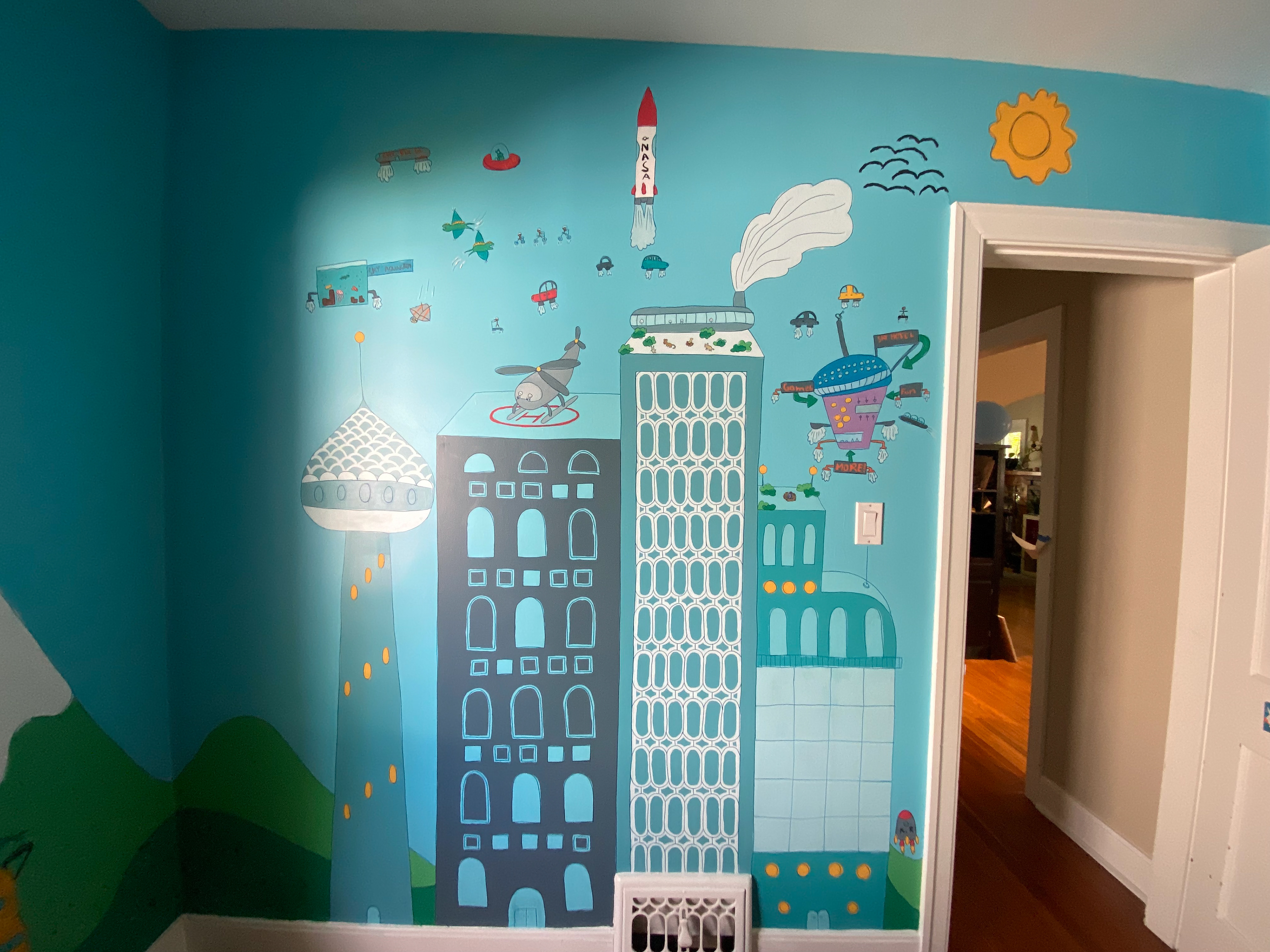 Mural designed and painted in collaboration with 8-year-old Oscar. Calgary, AB. 2022