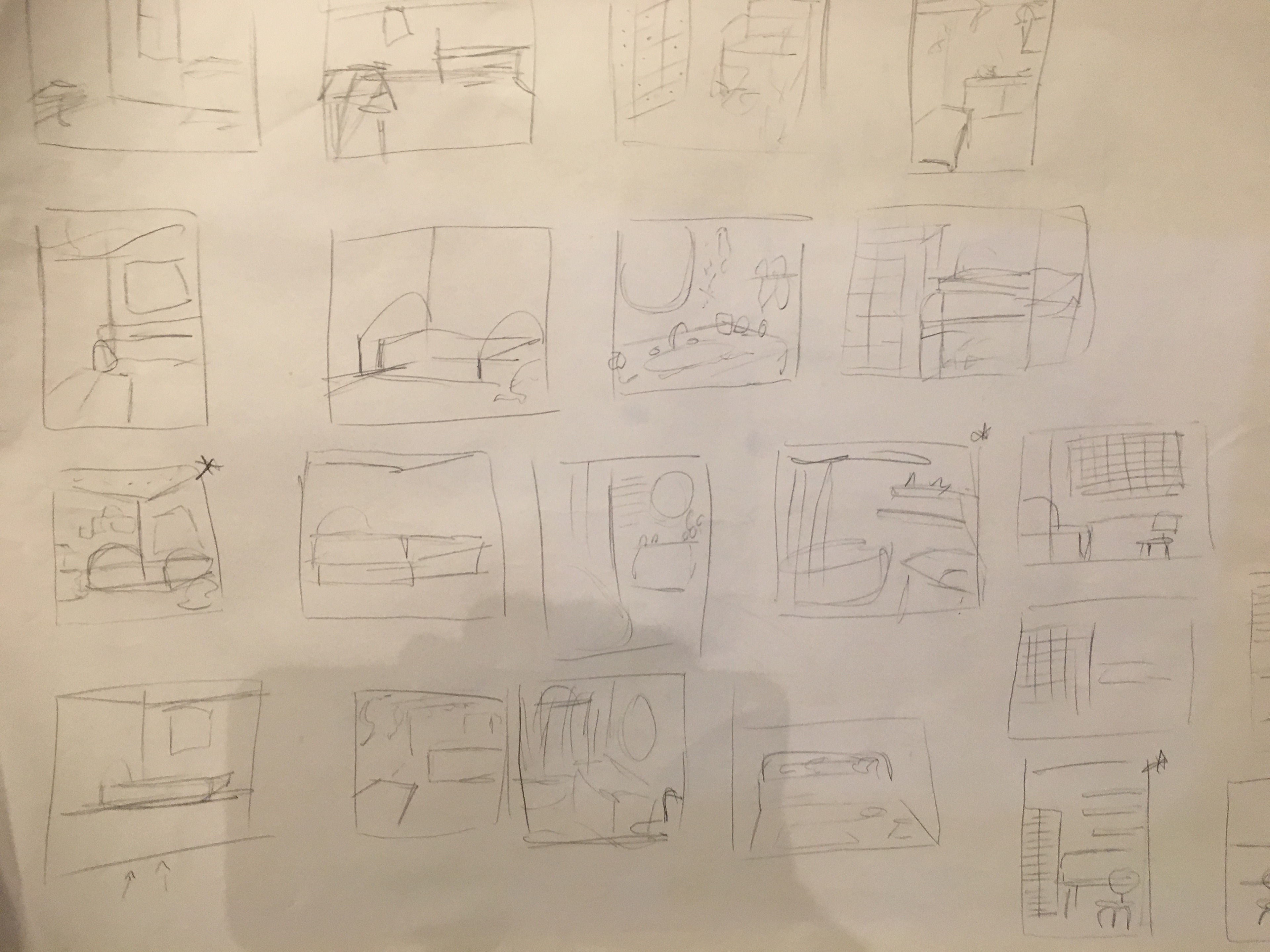 Environment design for a modern day witch character living in an apartment while going to school for medicinal magics. Examples of bedroom, bathroom, study, and kitchen.