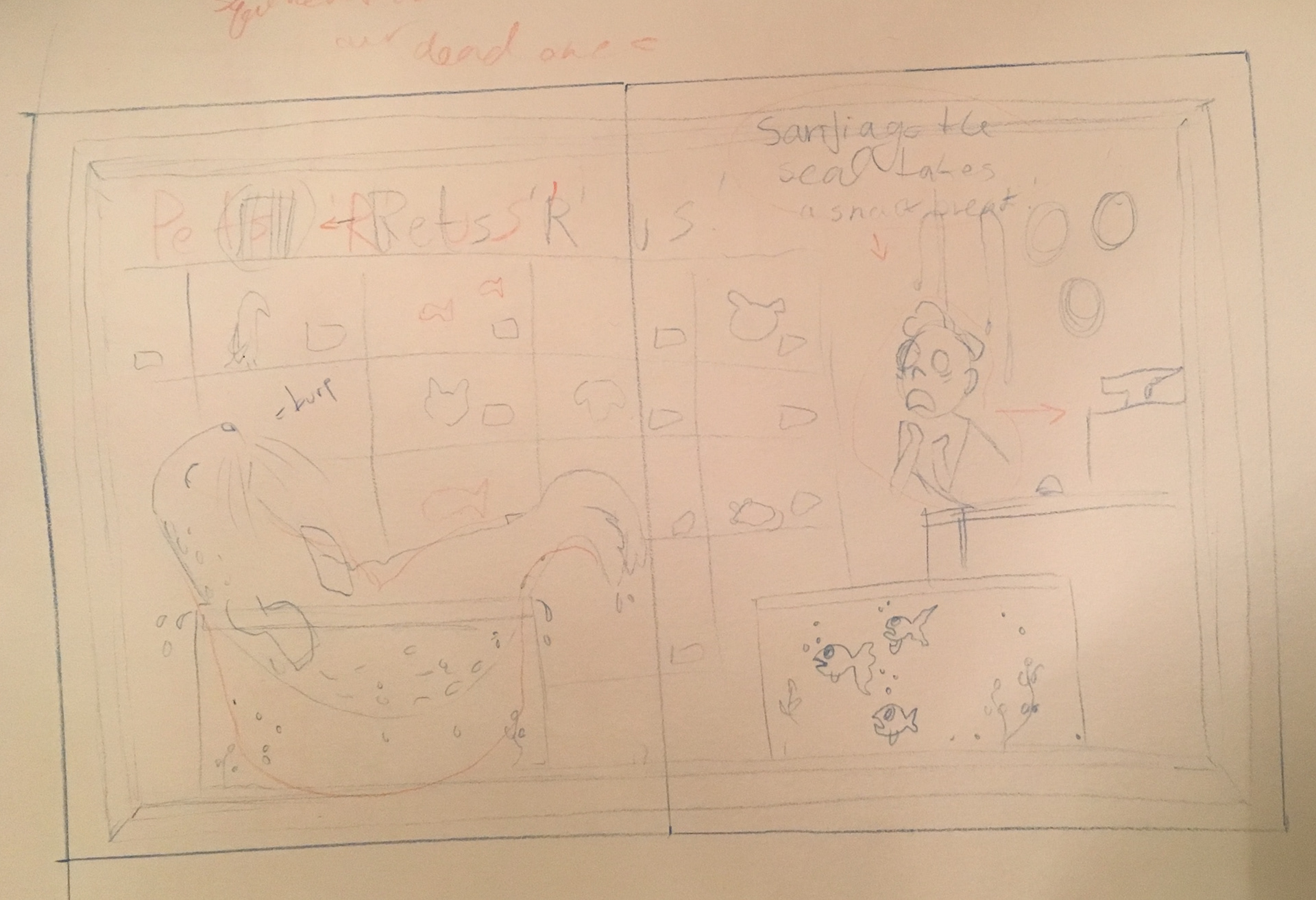 "Santiago the Seal Spread" - Watercolour, gouache, digital- 2018