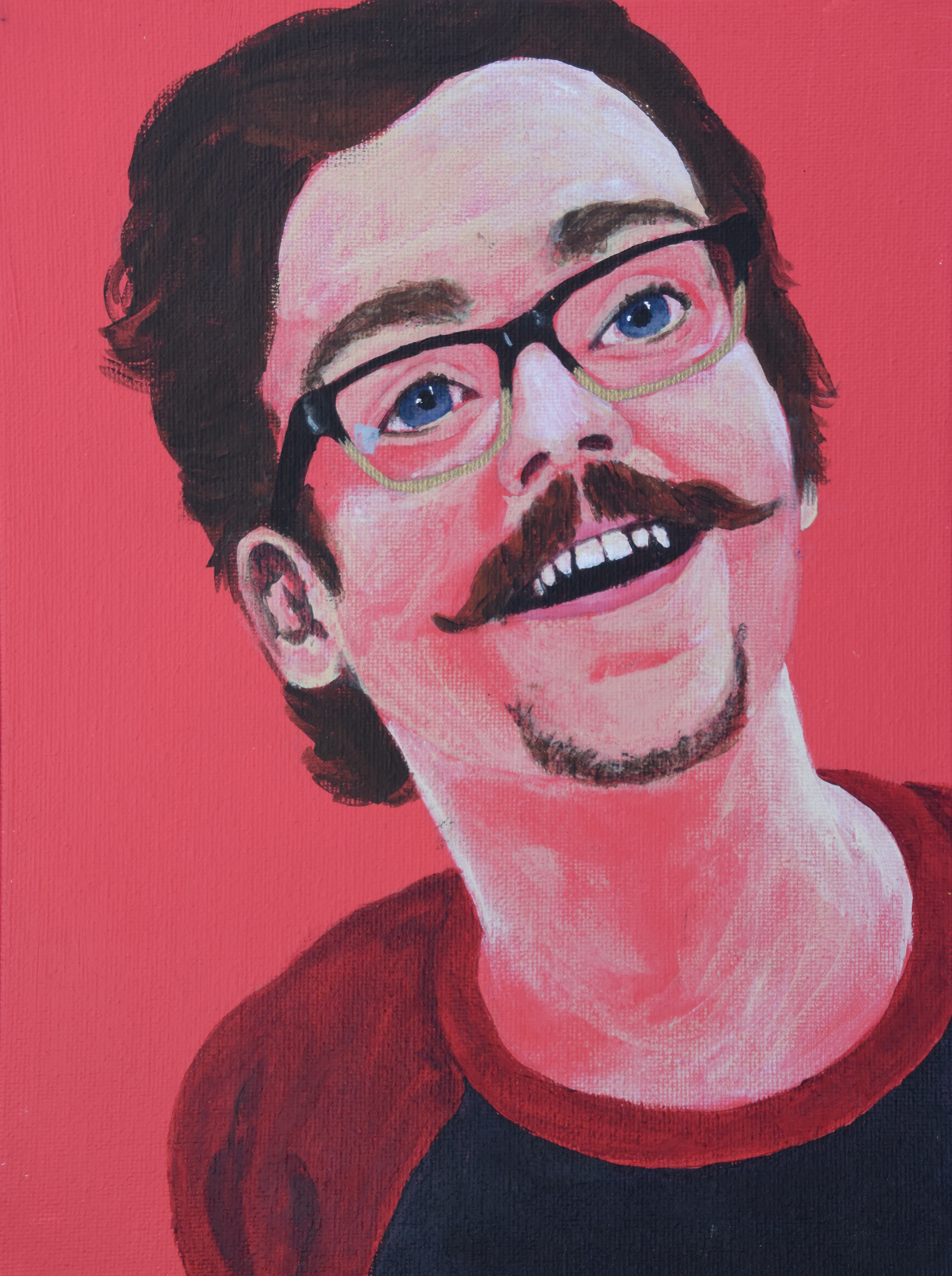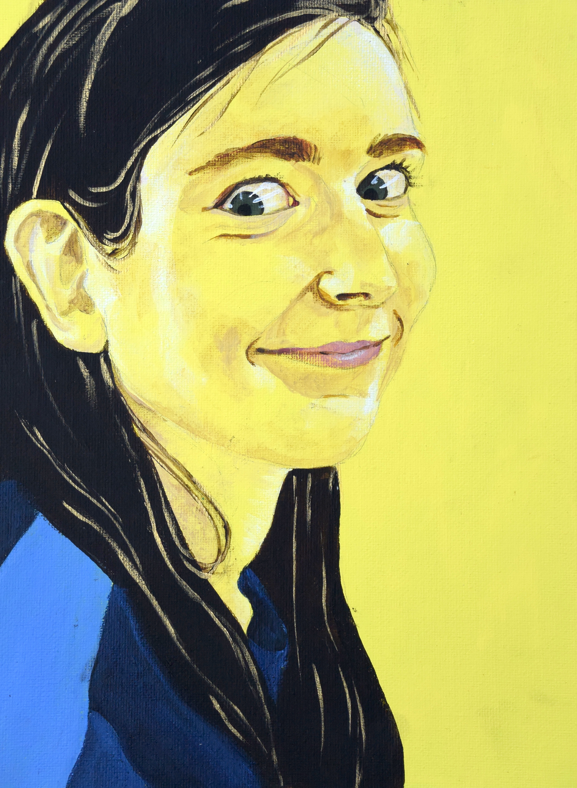 Portraits of classmates, acrylic paint on canvas board, experimenting with full saturation under paintings