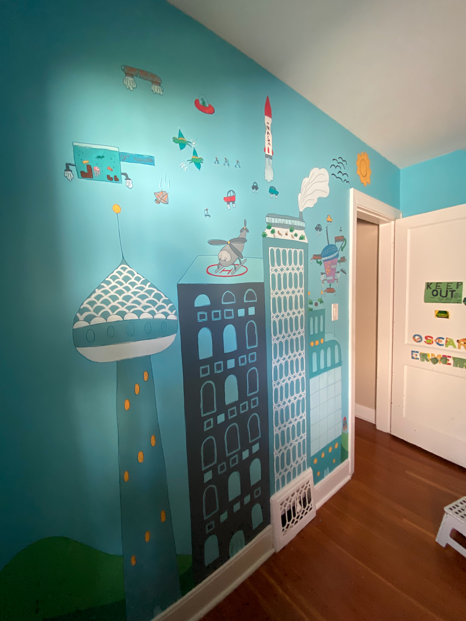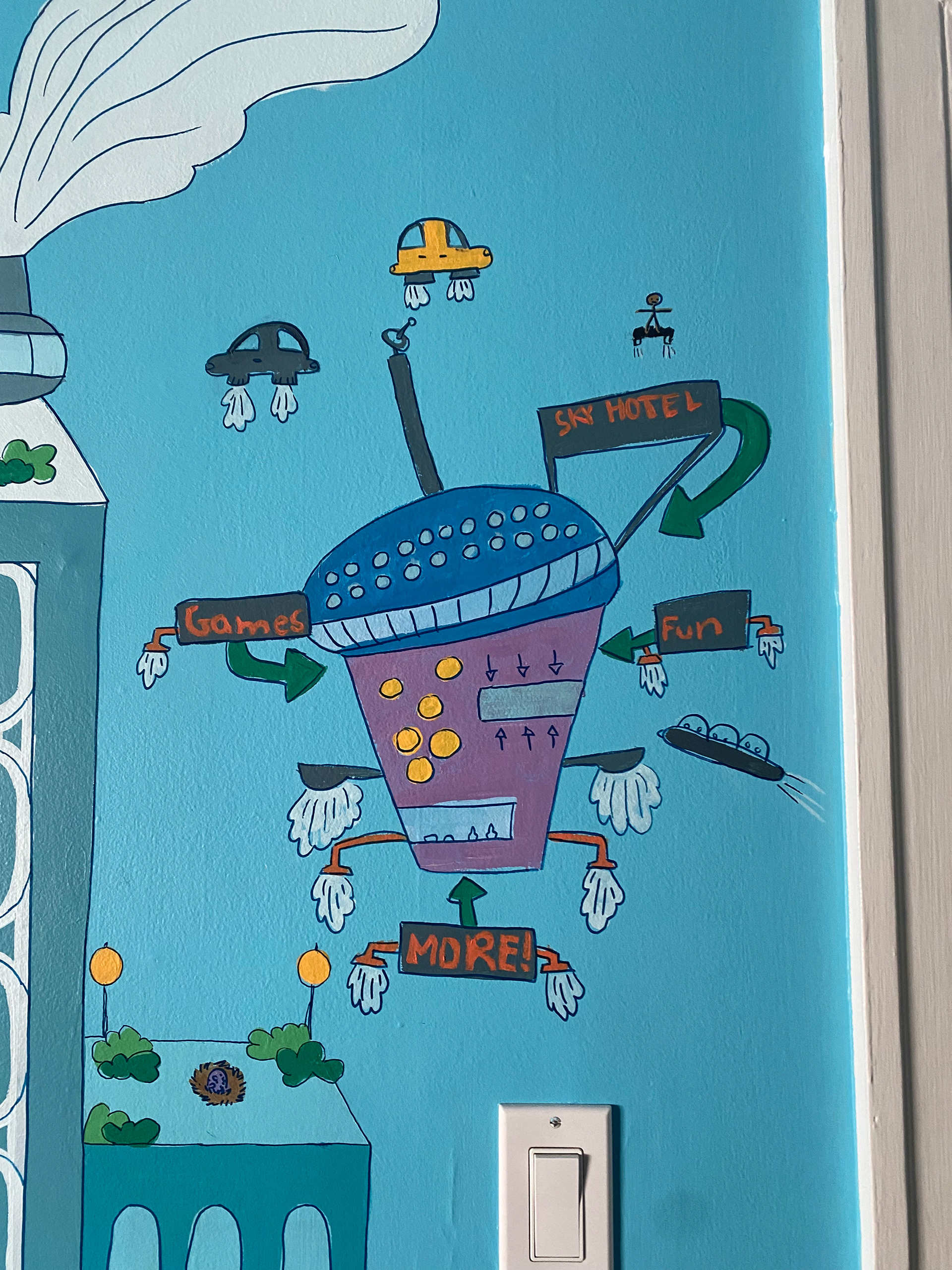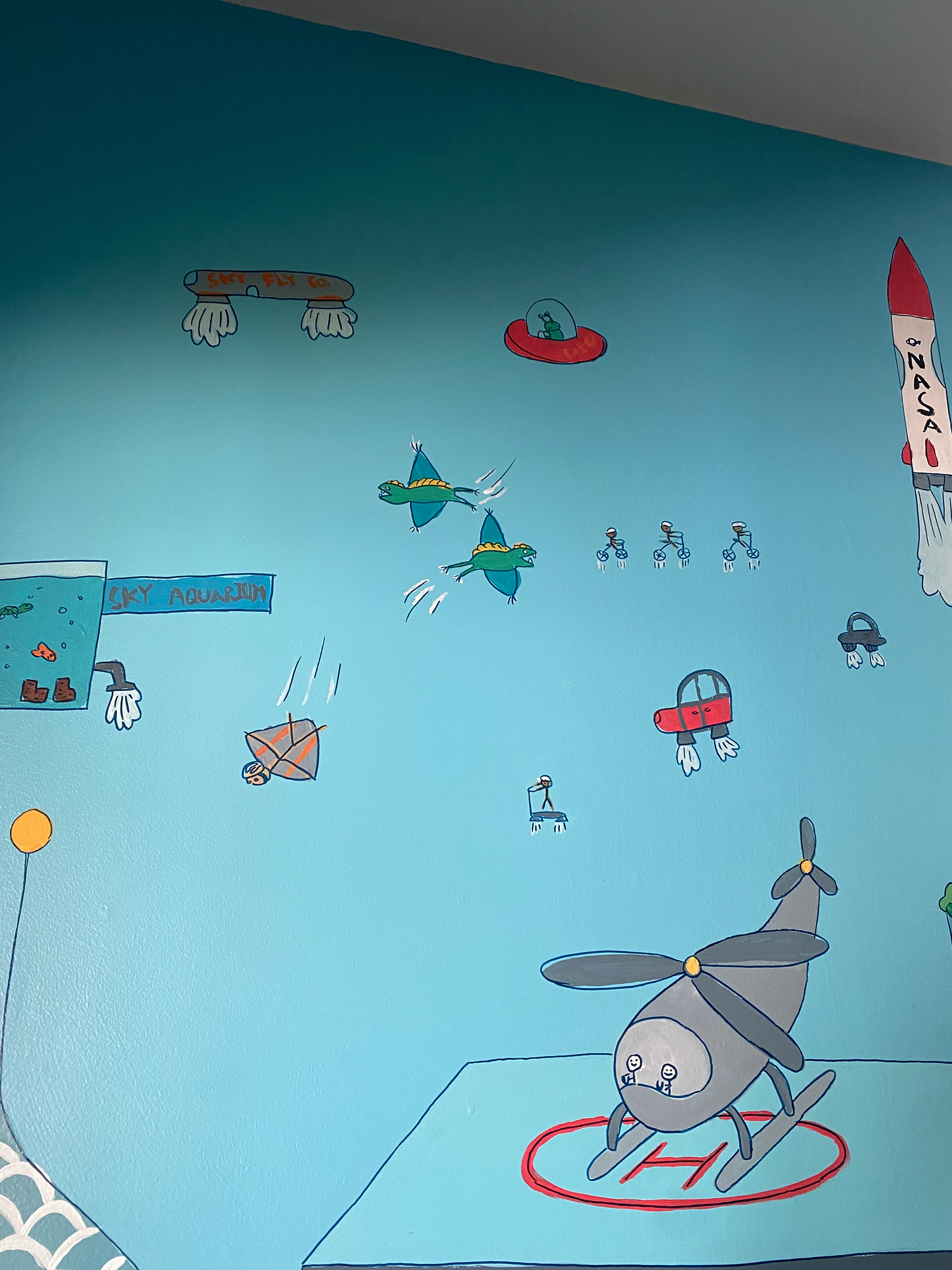 Mural designed and painted in collaboration with 8-year-old Oscar. Calgary, AB. 2022