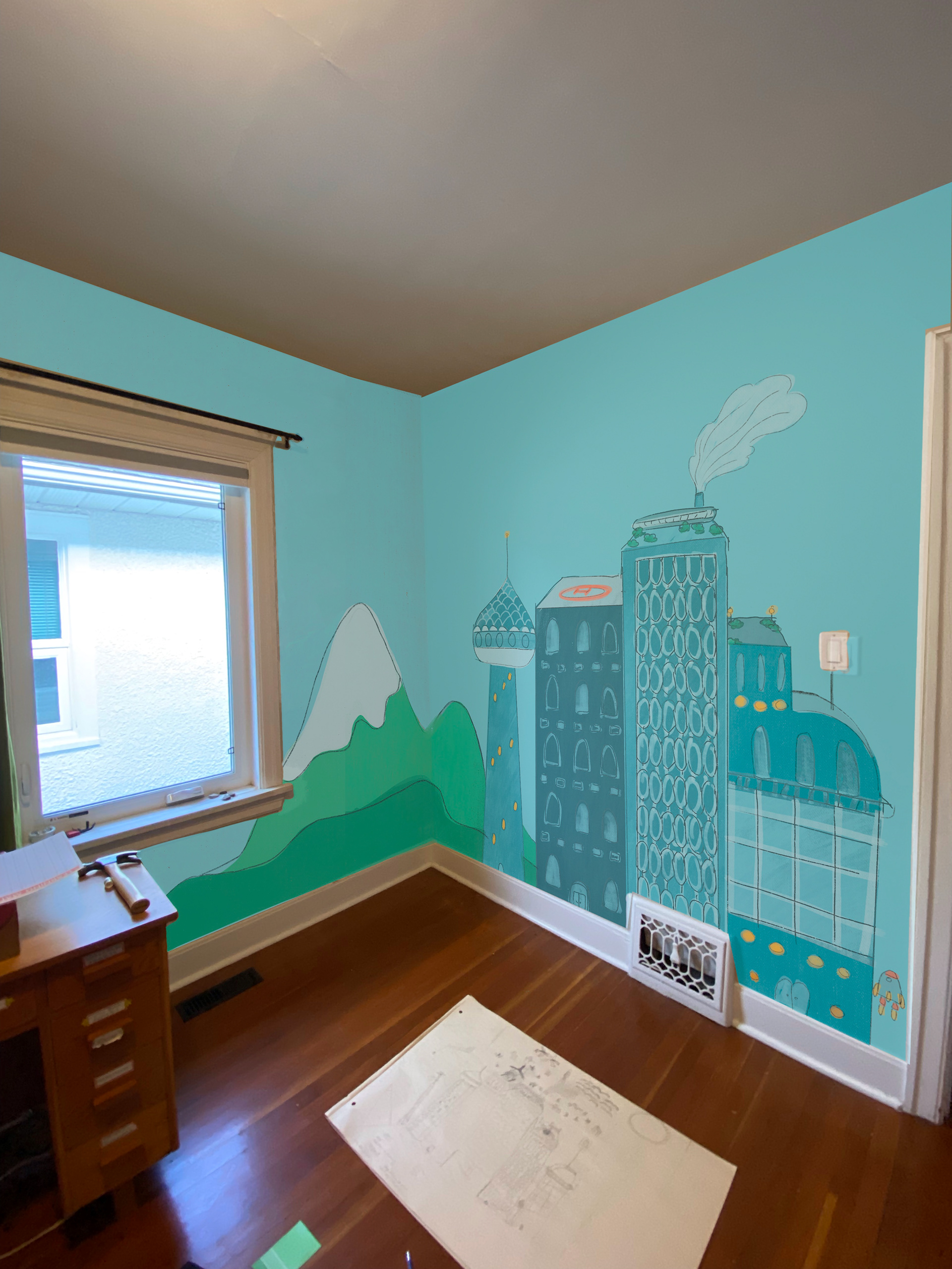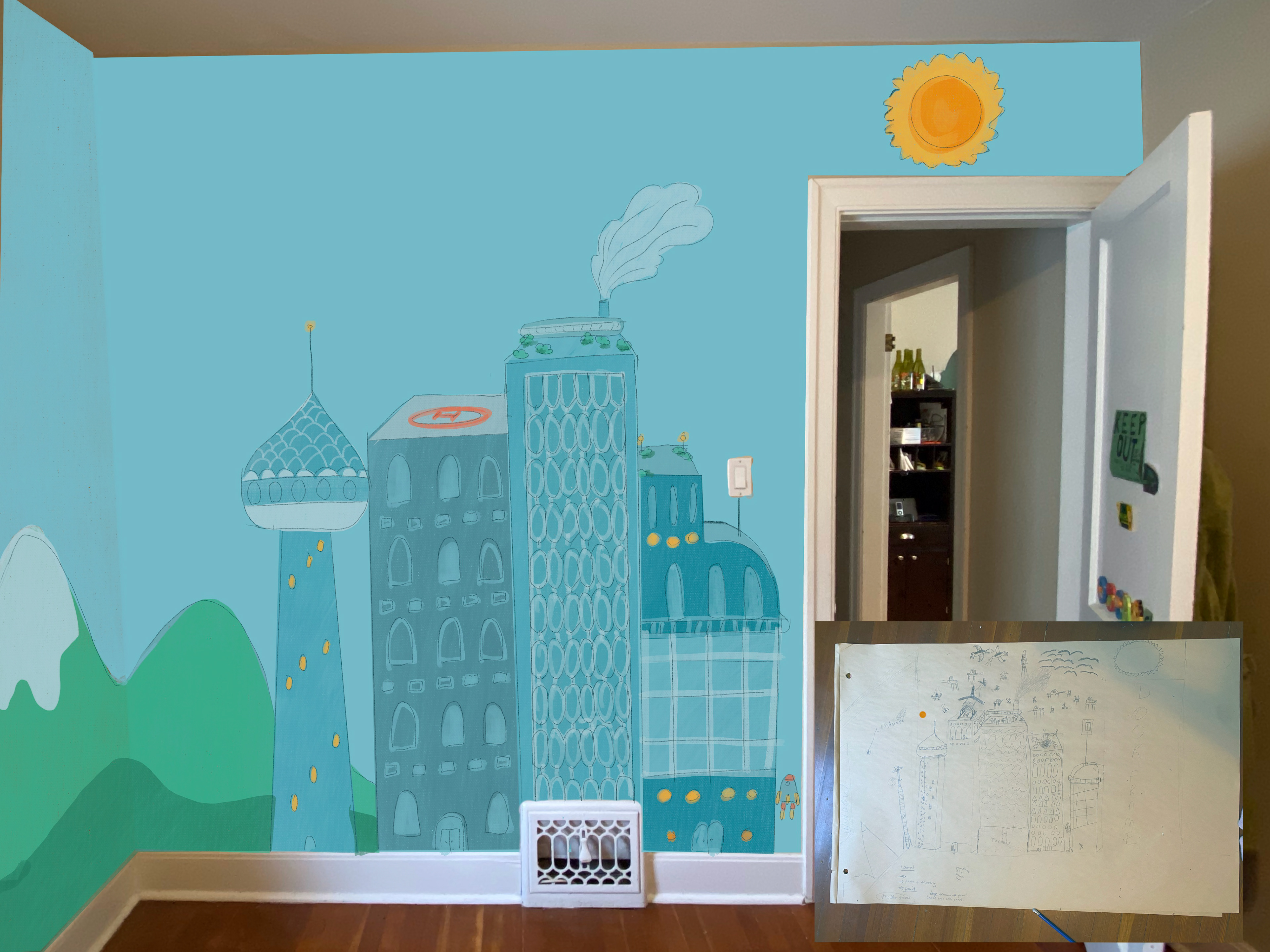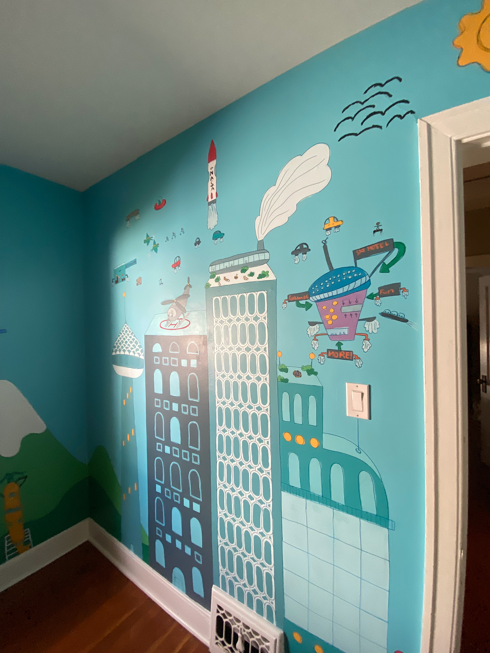 Mural designed and painted in collaboration with 8-year-old Oscar. Calgary, AB. 2022